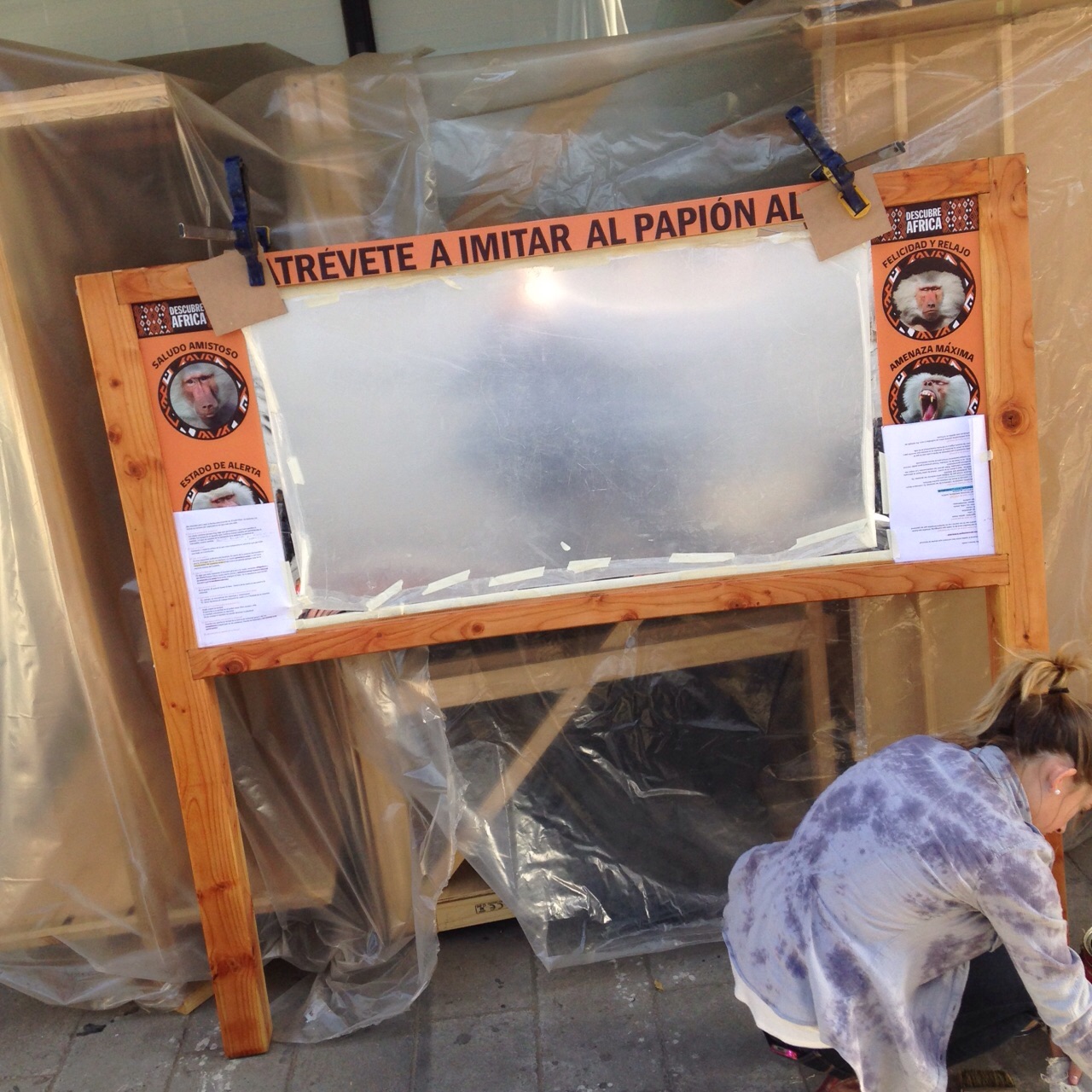 Luego el grupo se dividió en Fernanda Espoueys y Gabriela Godoy, las cuales se quedaron para pegar y redondear los bordes de la parte posterior del prototipo, Florencia Aguirre junto a Isidora Ruiz-Tagle comenzaron a pegar el título en el pedazo de lata para luego éste pegarlo en la estructura de madera, y por último Isidora Pérez con Fernanda Romagnolli salieron del taller para comenzar a rellenar las cajas con cemento.
