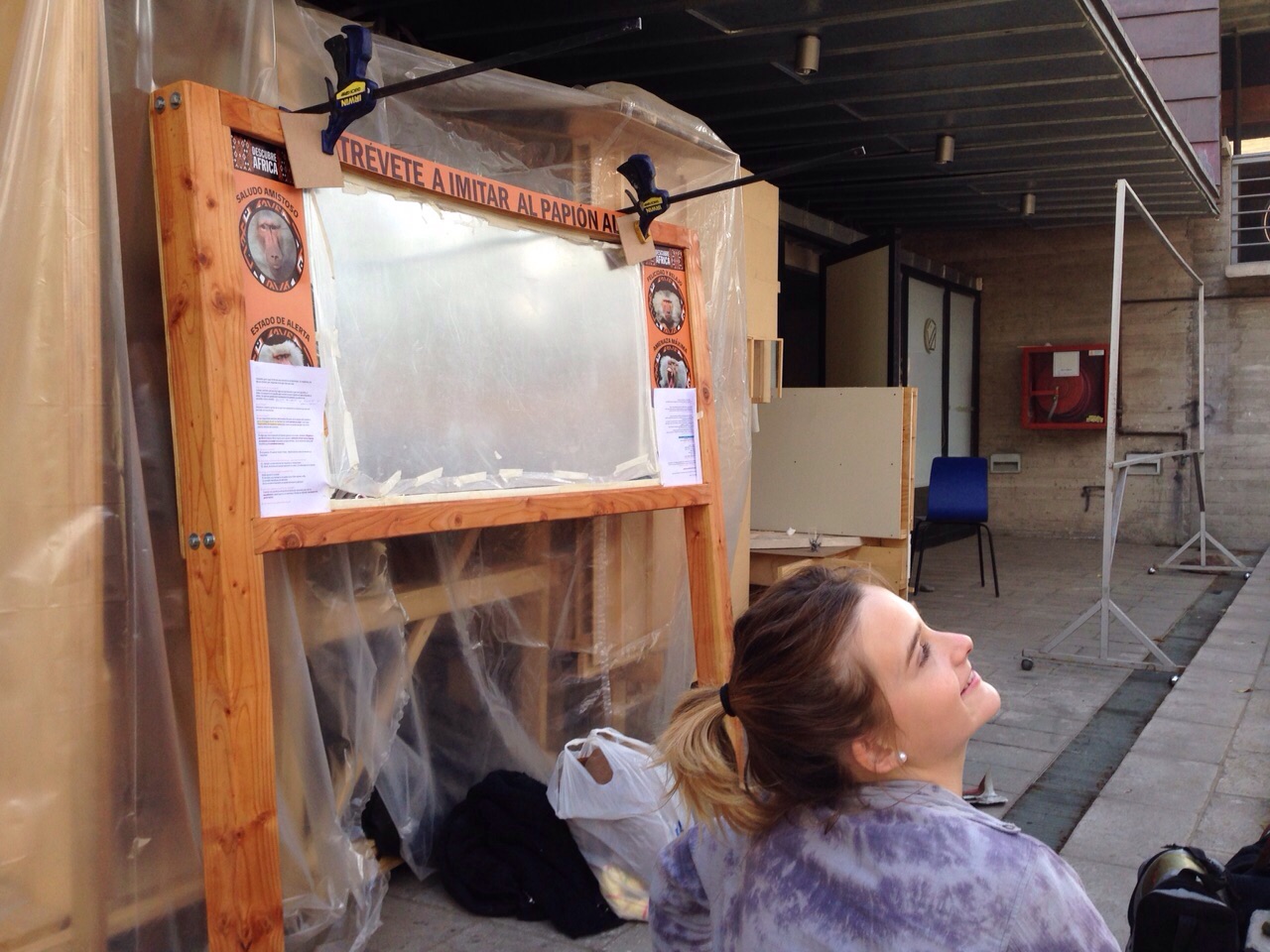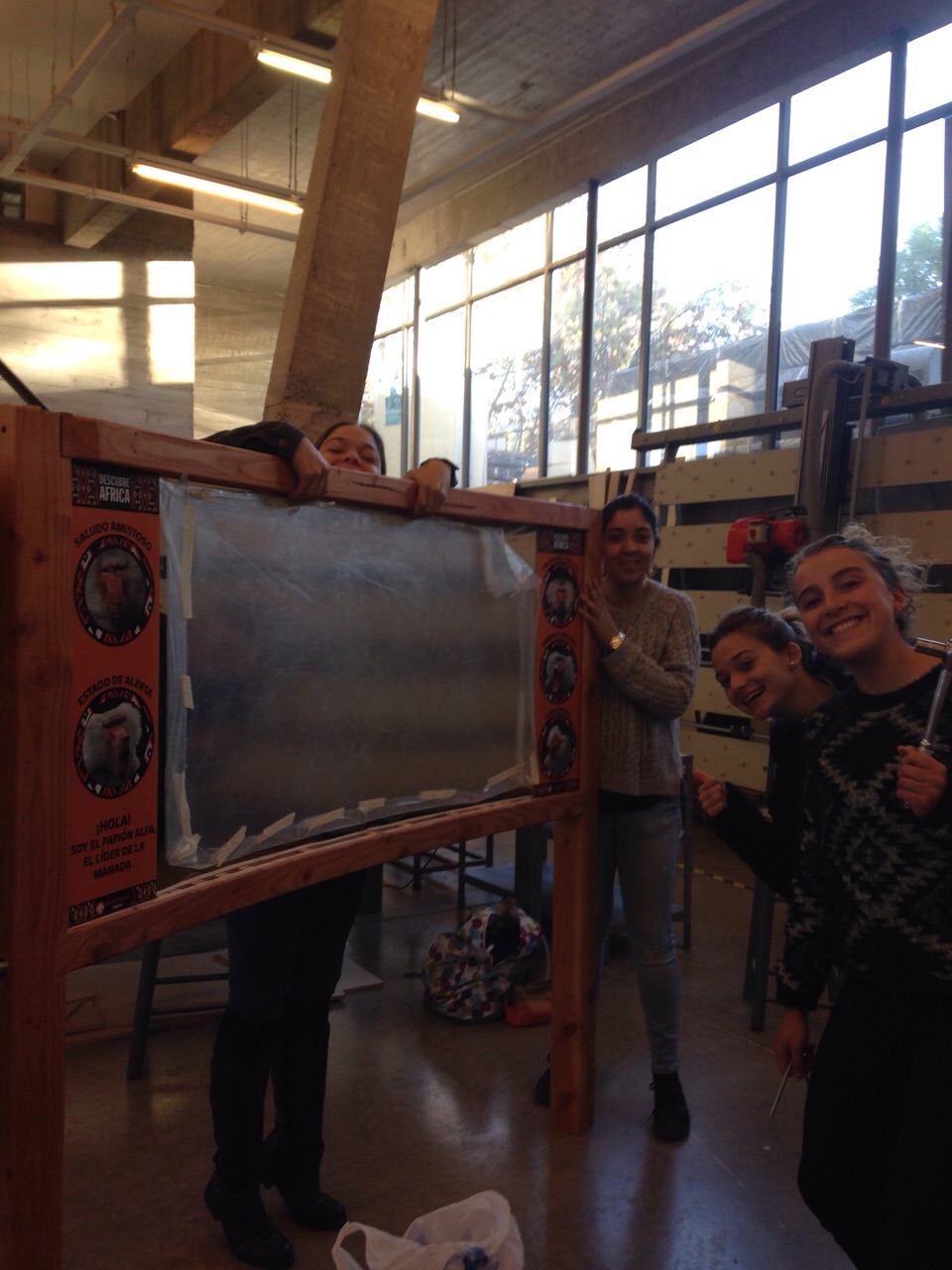 Después de almuerzo, Florencia Aguirre junto a Fernanda Romagnoli fueron a comprar los materiales que nos faltaban al Homecenter Sodimac y luego antes de llegar a la universidad, pasaron a buscar los stickers de pvc, los cuales contienen las imágenes con los gestos del papión alfa, título y burbuja de texto, a la gráfica en la cual los mandamos a imprimir.