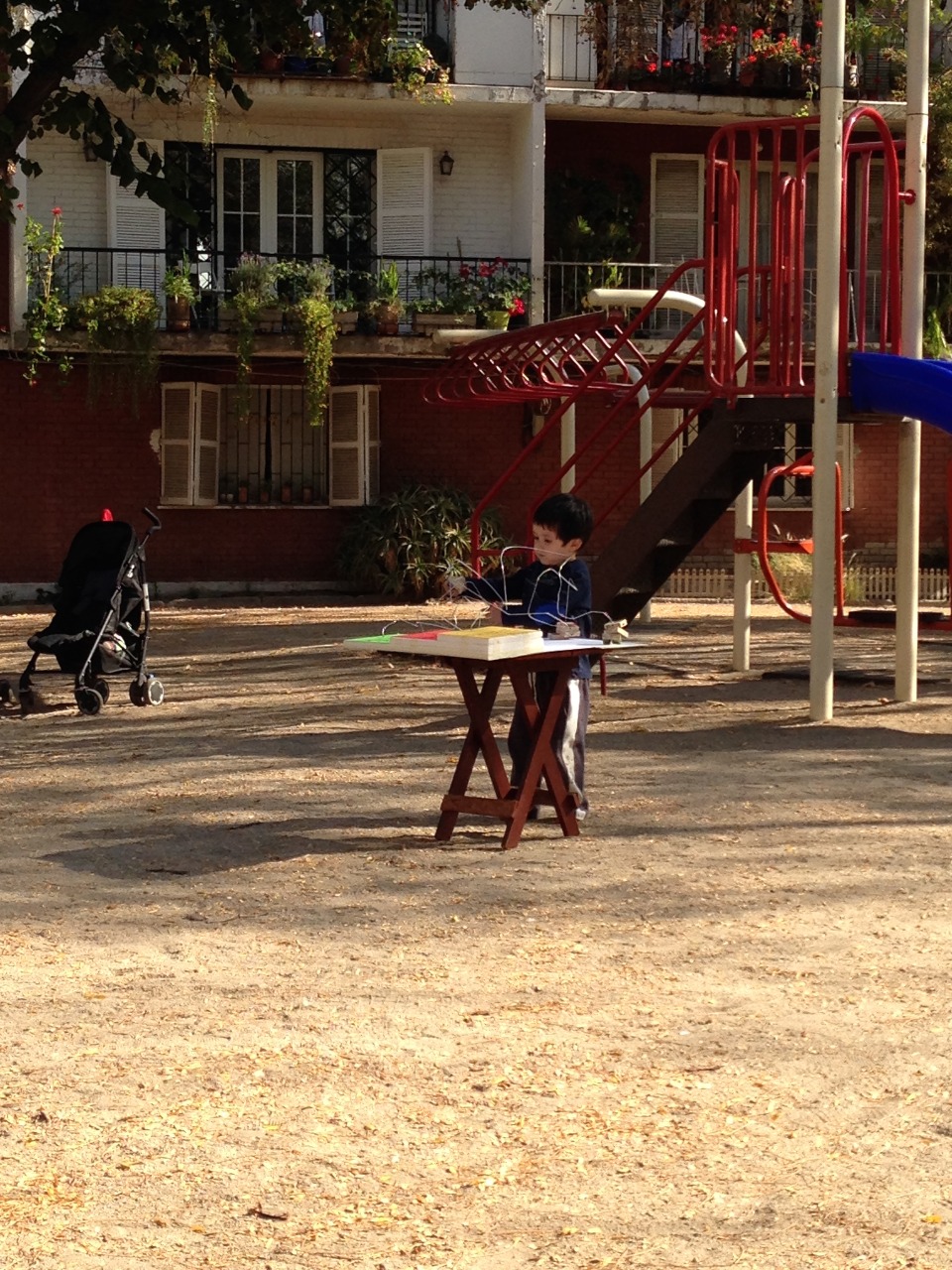 Nos enteramos que no era posible ir al zoológico debido a una causa extrema y que no estábamos autorizados hacer testeo. Debido a esto nos juntamos a las 13:00 para organizar la información de la presentación y solucionar cómo lo íbamos a testear. Entonces pensamos que al necesitar niños que pudieran testear el prototipo una plaza podría servir, fuimos a la más cercana; Plaza Padre Letelier.